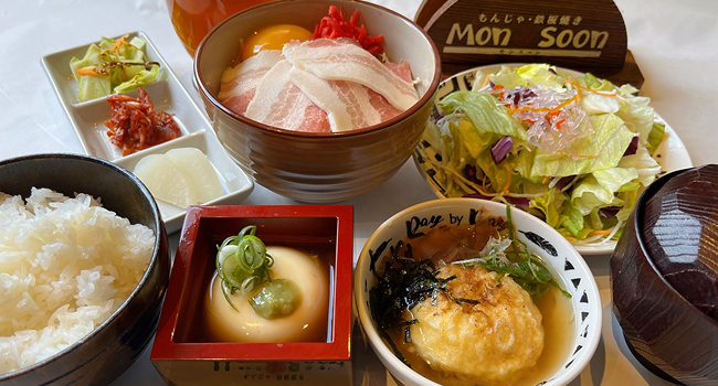 鈴鹿市のモンスーンでは、お好み焼き、もんじゃ焼き、鉄板焼きをはじめ種類豊富なメニューをご用意しております。